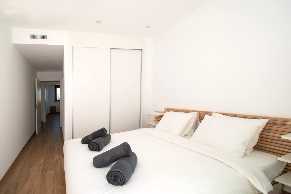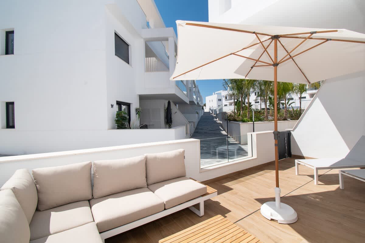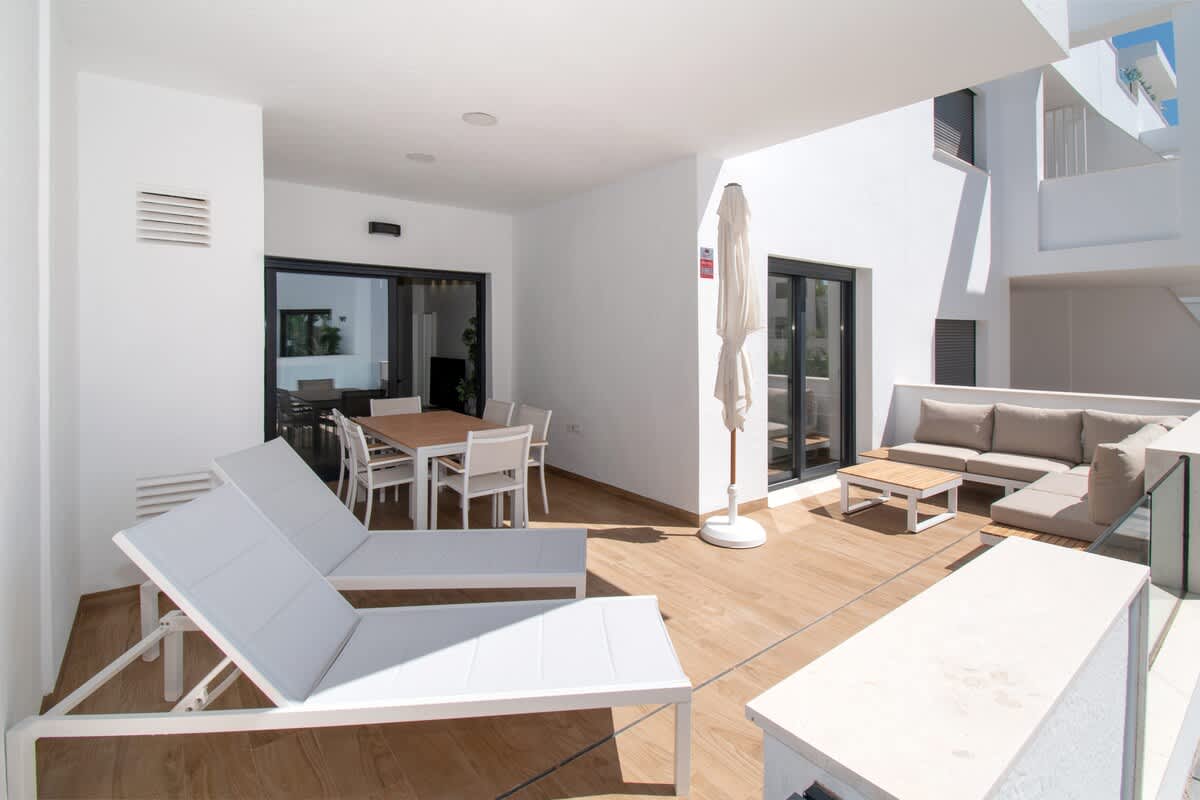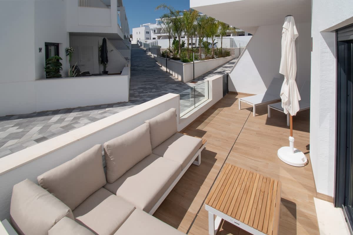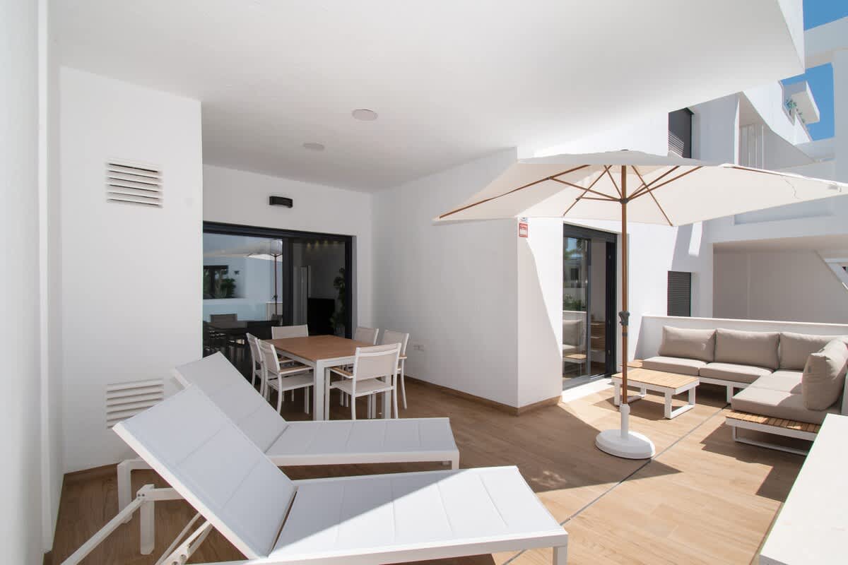 Dispose de 2 chambres et 2 salles de douches, cuisine entièrement équipée, salon lumineux donnant directement sur la terrasse arrière et face à la piscine. Profitez également d'une deuxième terrasse à l'avant de l'appartement. Ces deux terrasses vous permet de profiter du soleil ou de la fraîcheur à tout moment de la journée