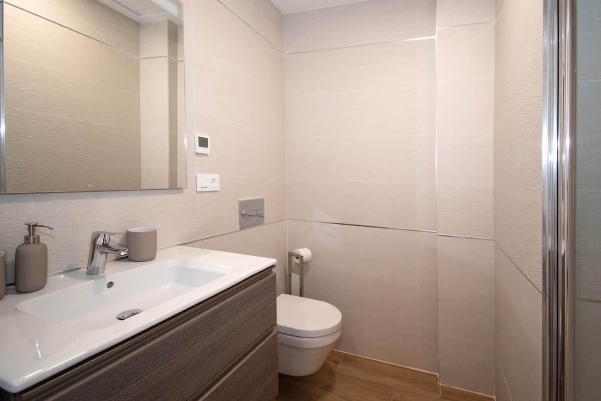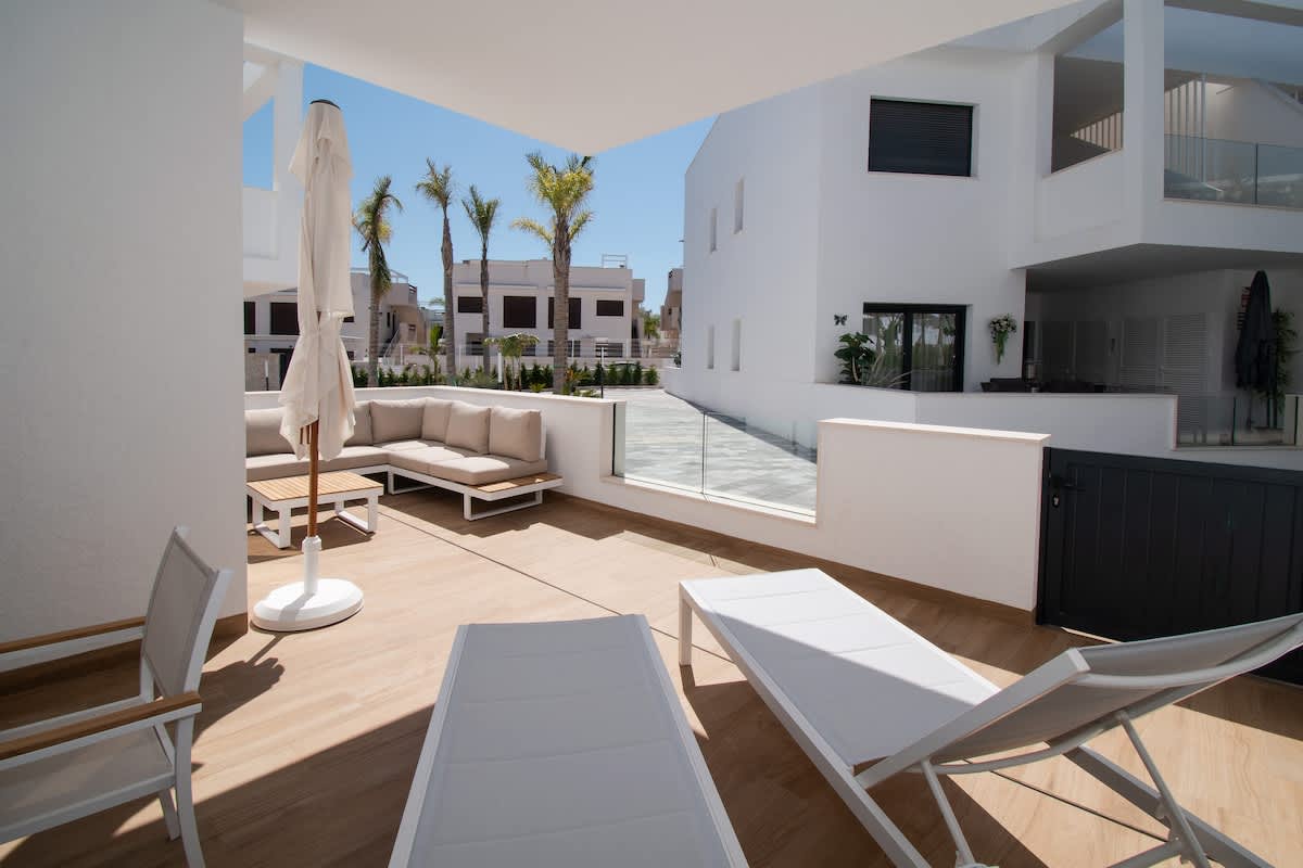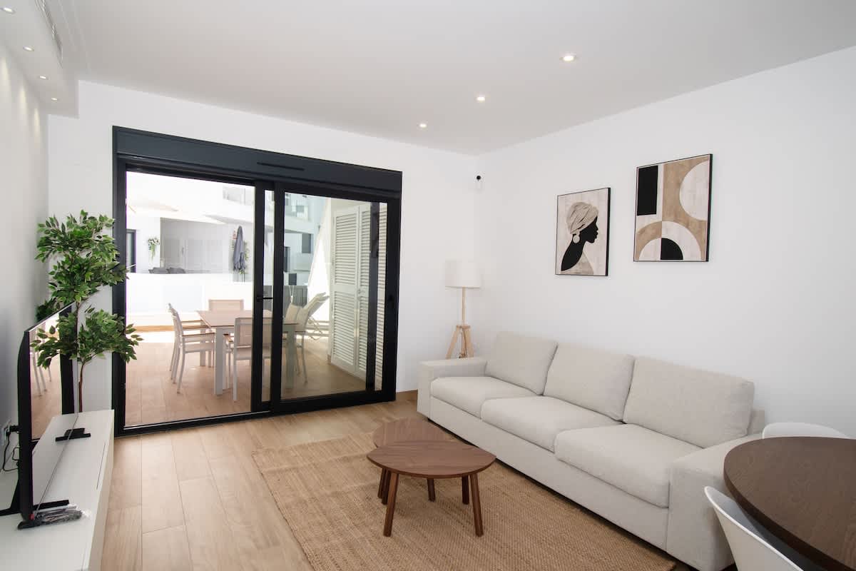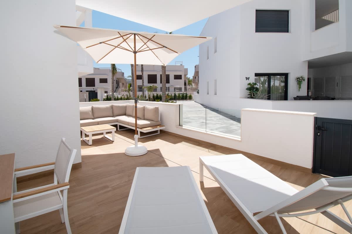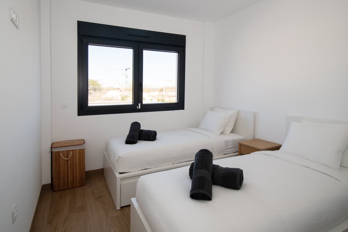 Dispose de 2 chambres et 2 salles de douches, cuisine entièrement équipée, salon lumineux donnant directement sur la terrasse arrière et face à la piscine. Profitez également d'une deuxième terrasse à l'avant de l'appartement. Ces deux terrasses vous permet de profiter du soleil ou de la fraîcheur à tout moment de la journée